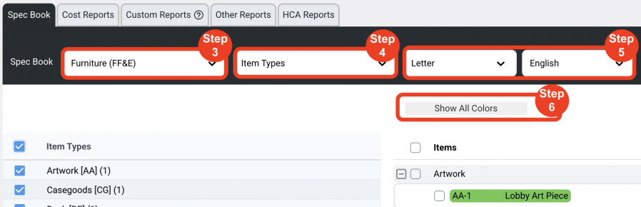 - Checking this will show a colored band if that Item was assigned a color status in the Spec Schedule.